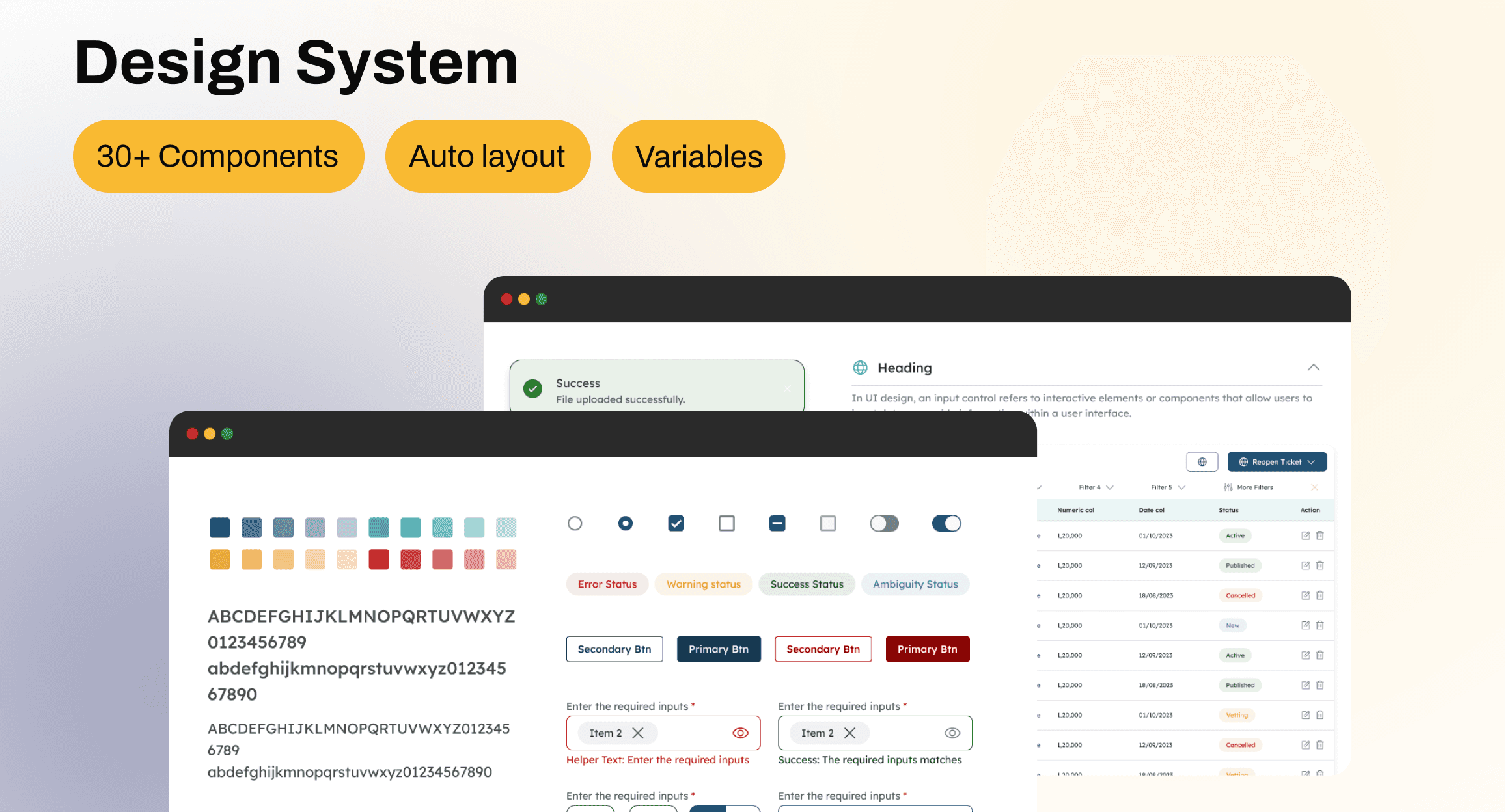 Centralized a unorganized UI ecosystem that relied on 50+ inconsistent colors and patterns. This unified, token-based system significantly strengthened cross-functional collaboration and enabled teams to ship features 30% faster with high accuracy across all product lines.