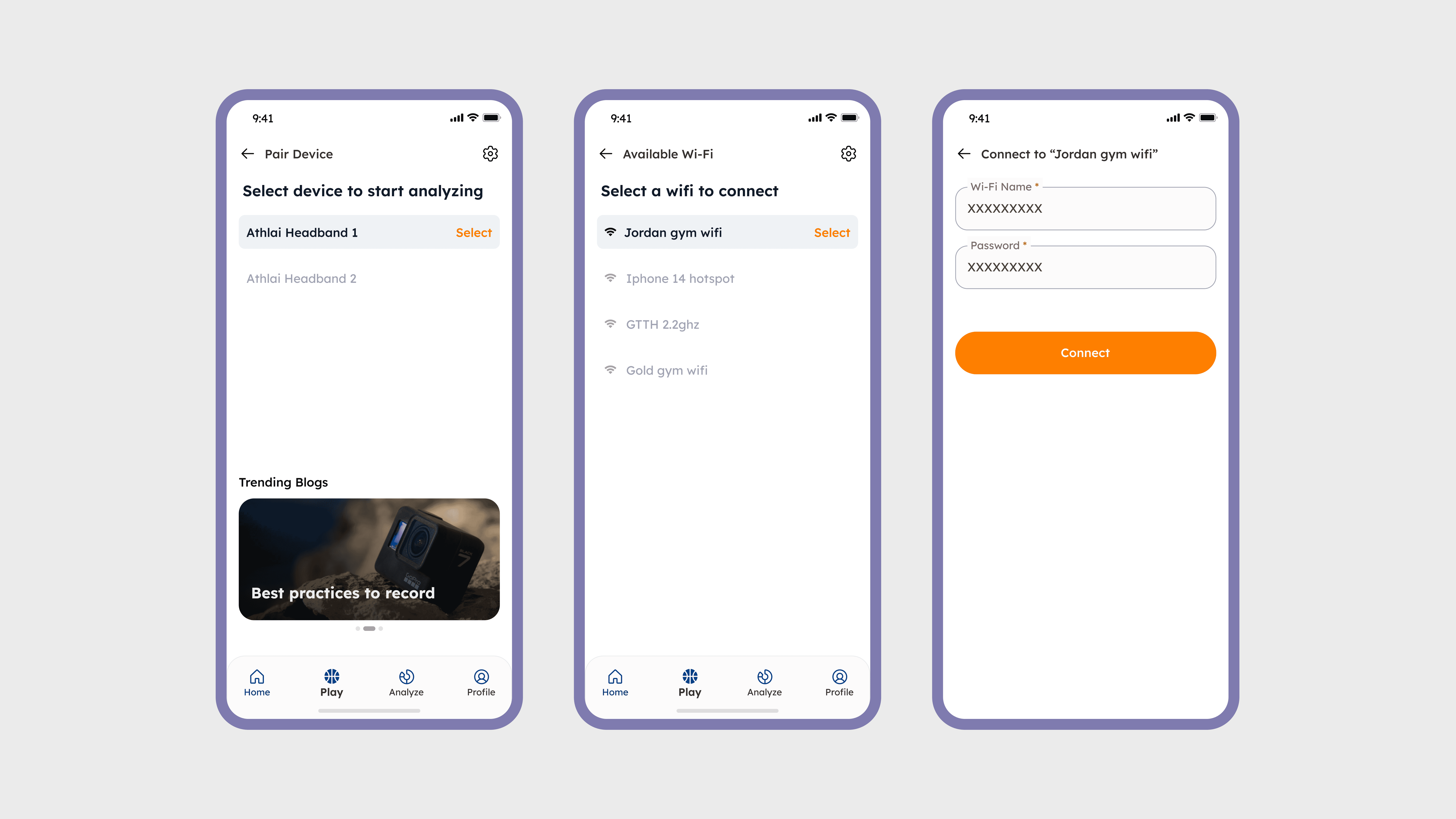 Img 4 : Initial device setup required connecting the wearable through Bluetooth and Wi-Fi before recording sessions could start.
